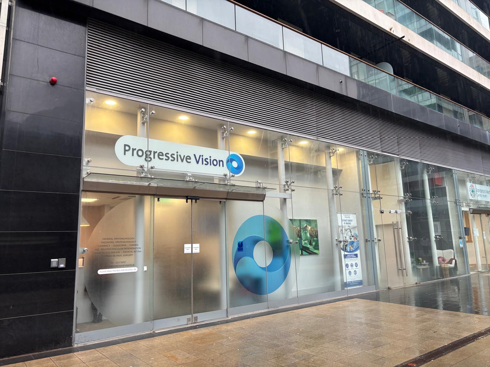 D. Progressive Vision is located on your right hand side before Dunnes Stores Home and Fashion